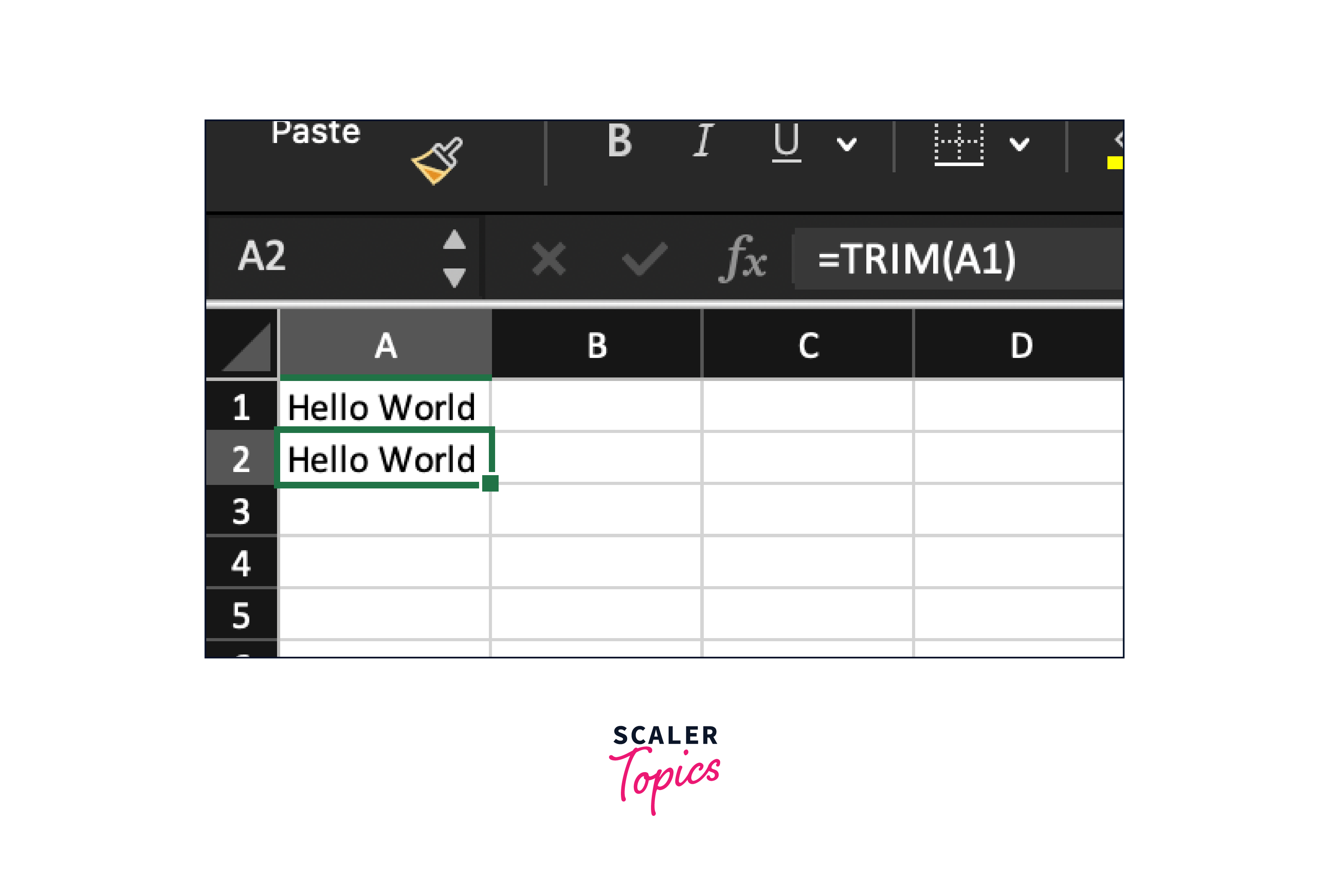 Example: Imagine you have the text "Hello World" in cell A1. You can use the TRIM function like this: