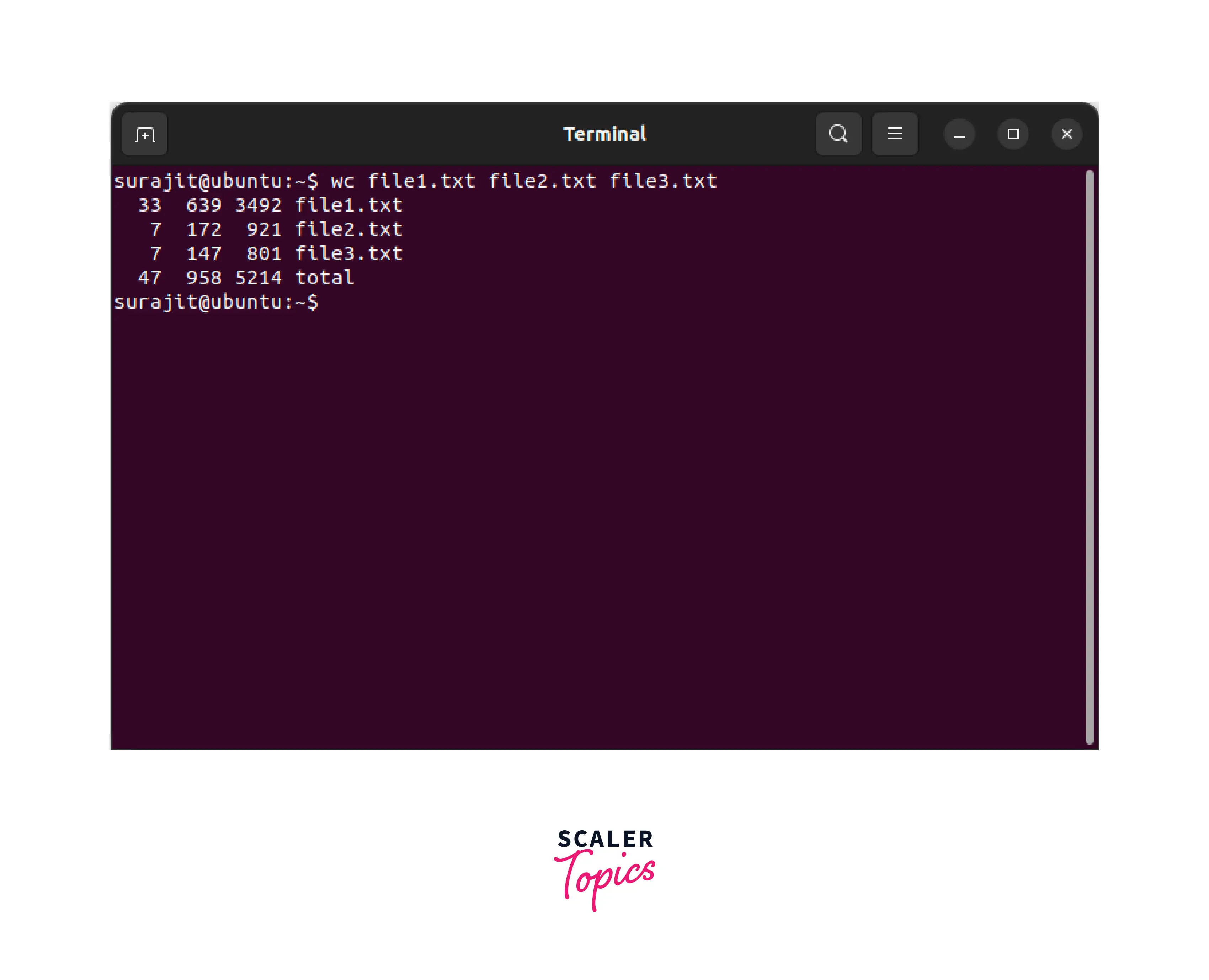 The wc command has a variety of uses. The following are some of the most common applications of the wc command. Let's learn.
