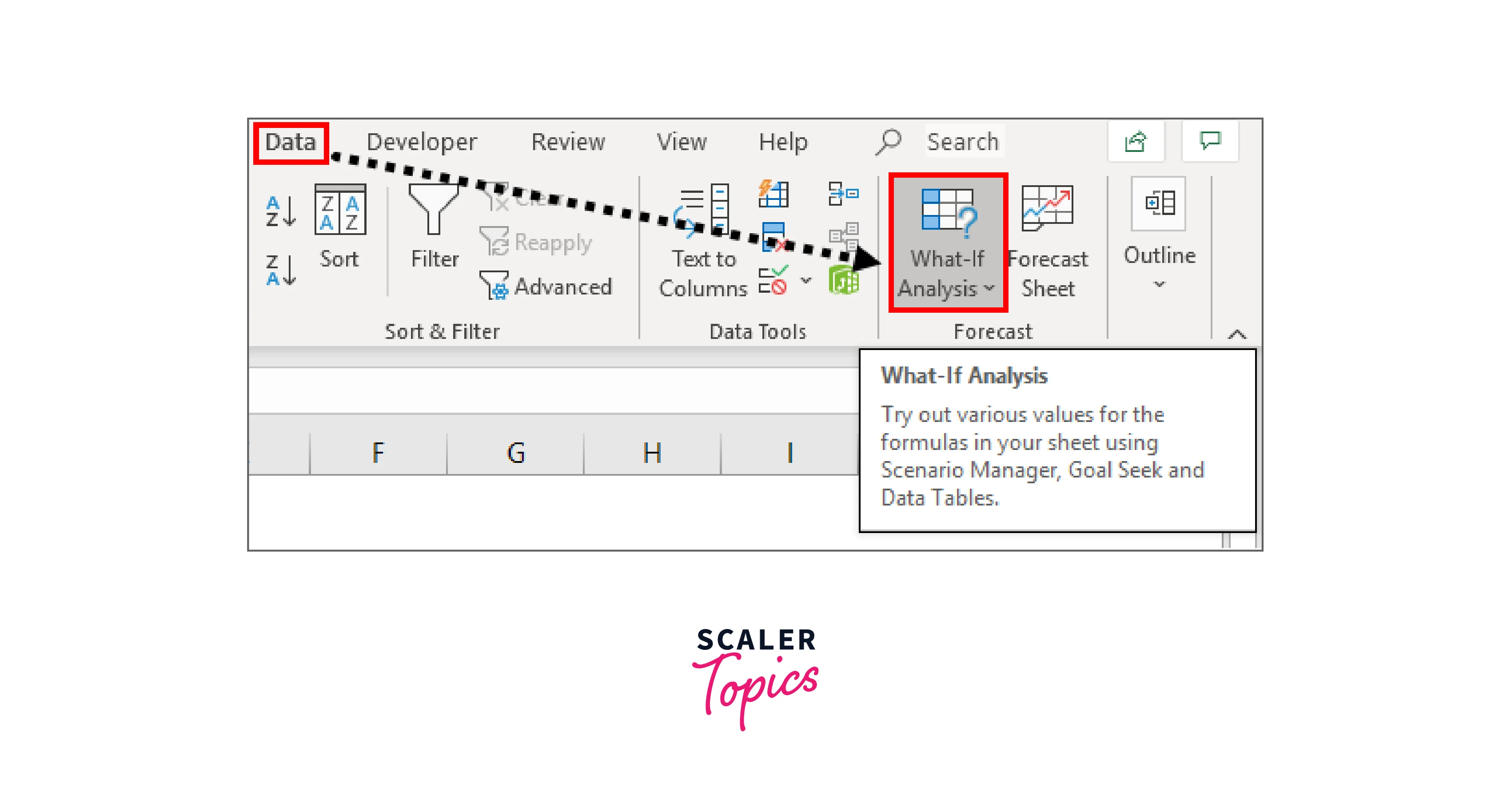 Select the "Data" tab in Excel and click on "What-if Analysis" from the "Forecast" group.
