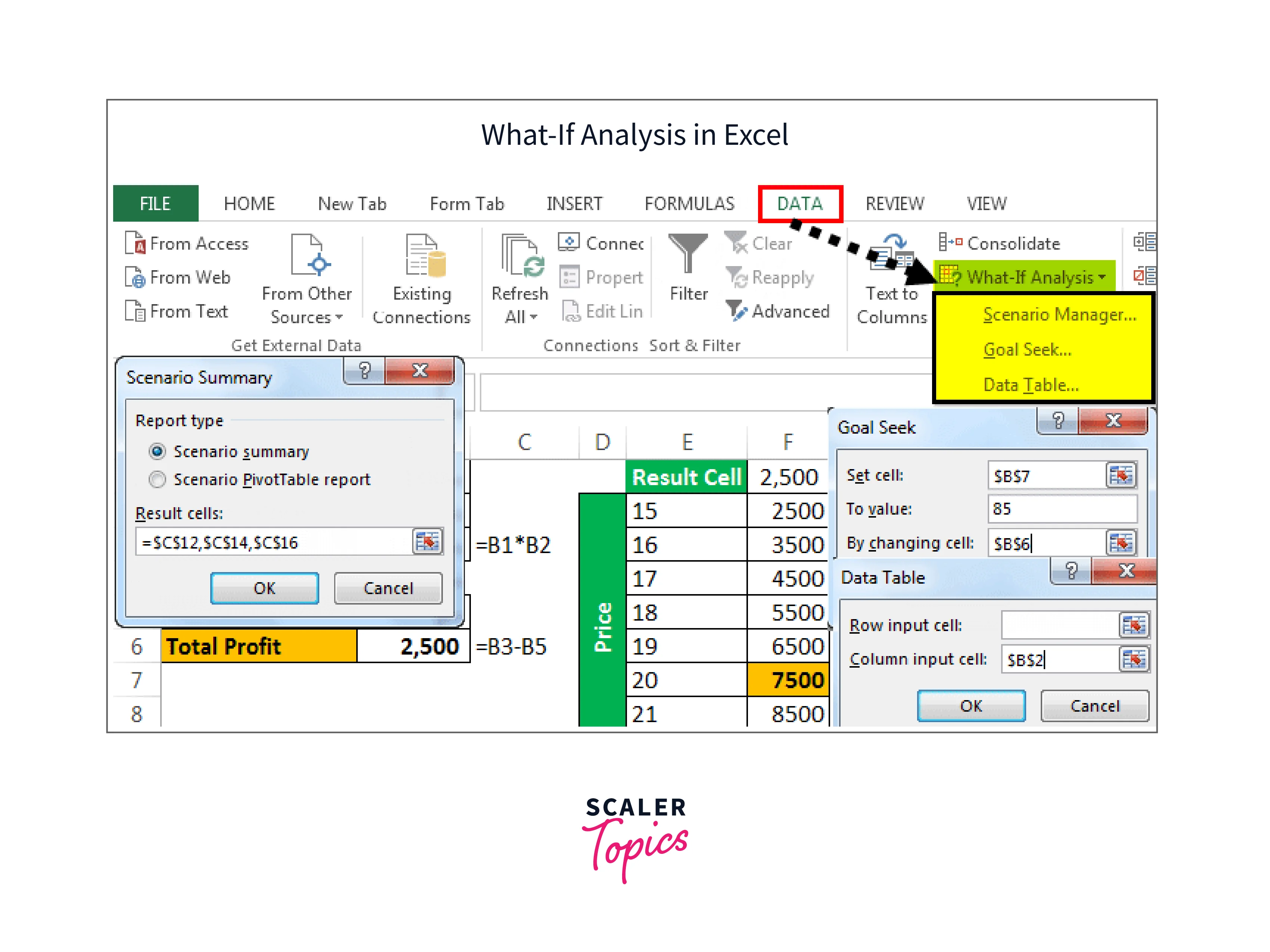 - It includes several What-if Analysis tools, including Scenario Manager, Goal Seek, and Data Table, each of which serves a different purpose and offers unique benefits.