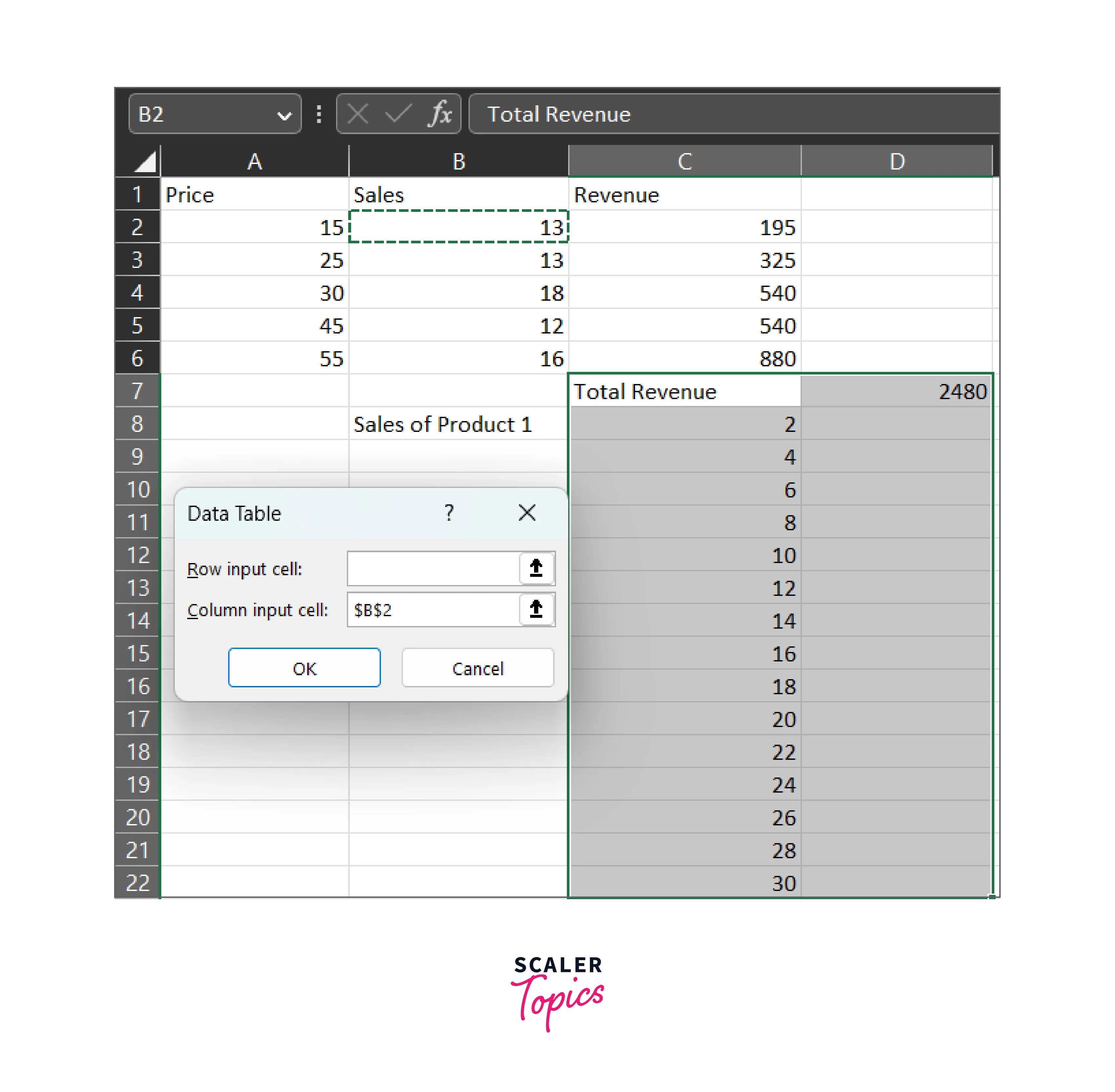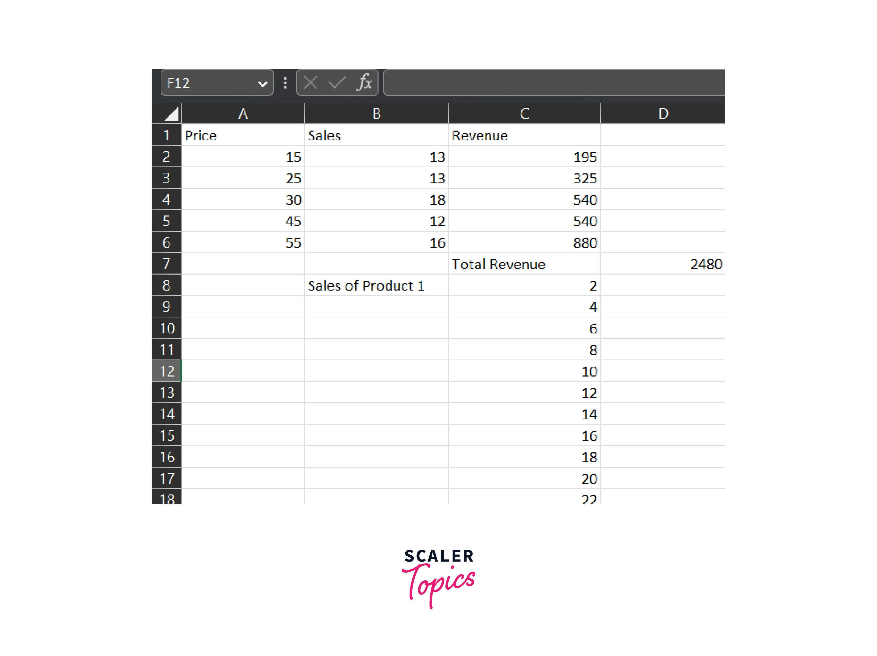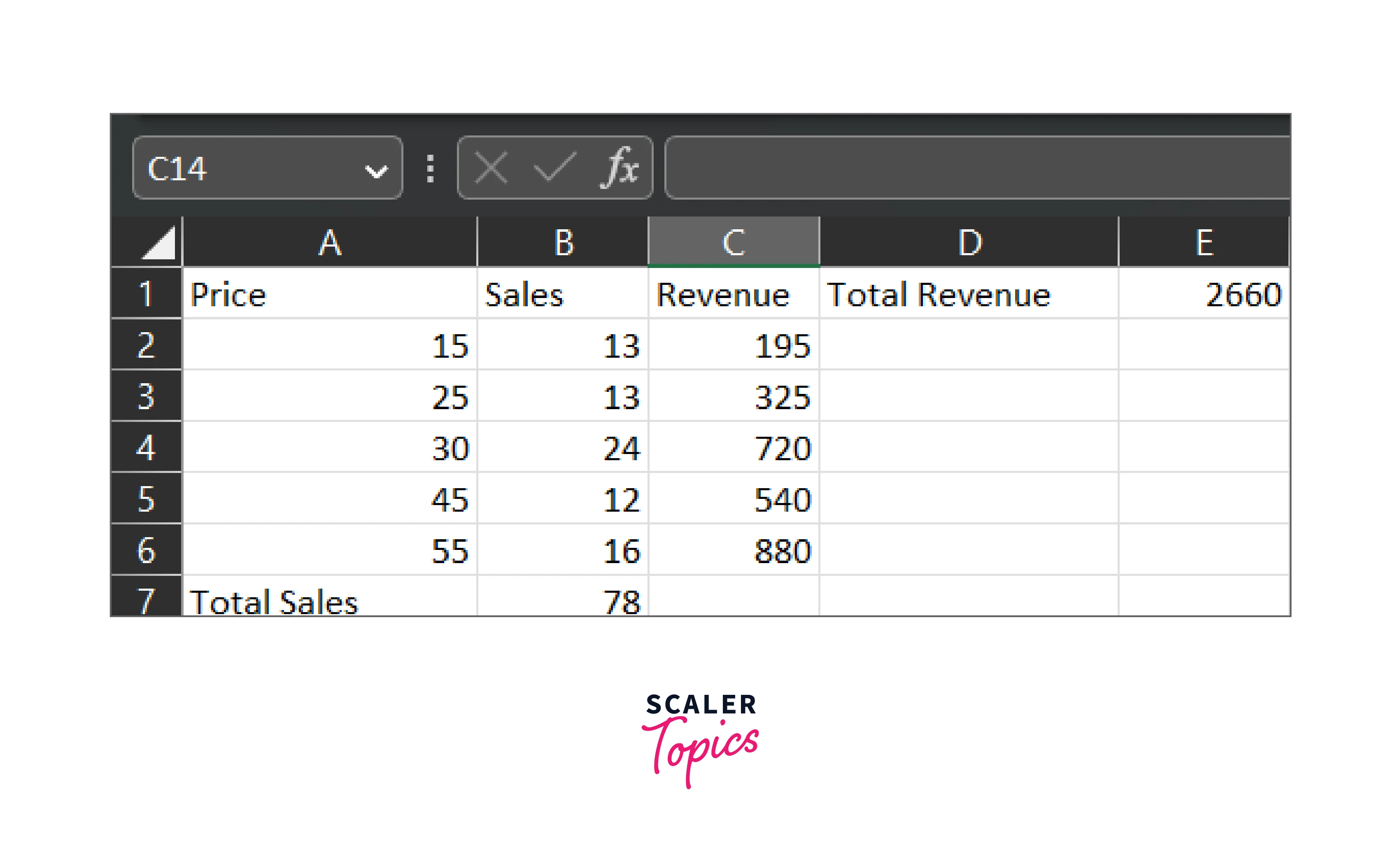 - In this example, we will use a simple spreadsheet that calculates the total revenue based on the price and the sales volume.