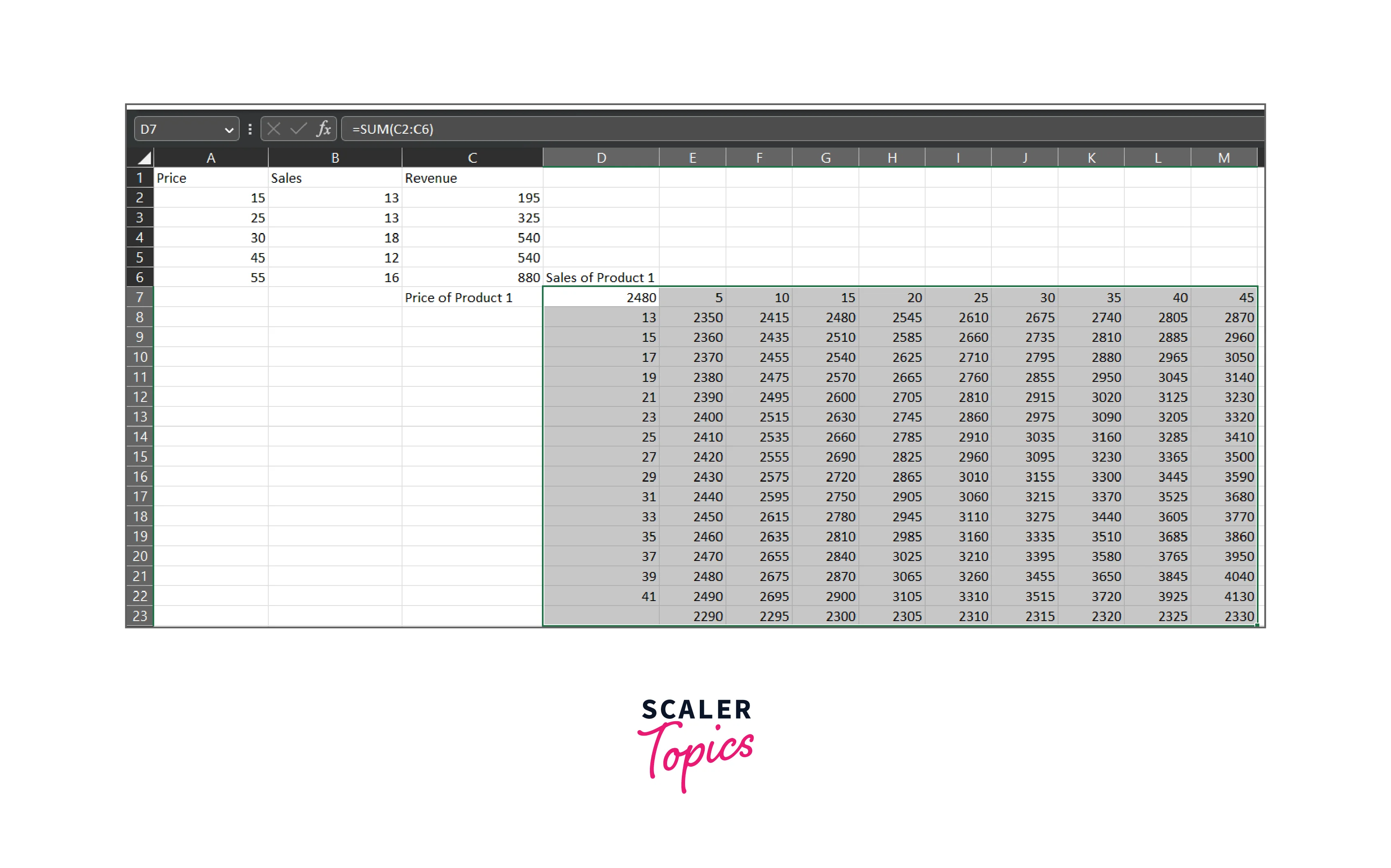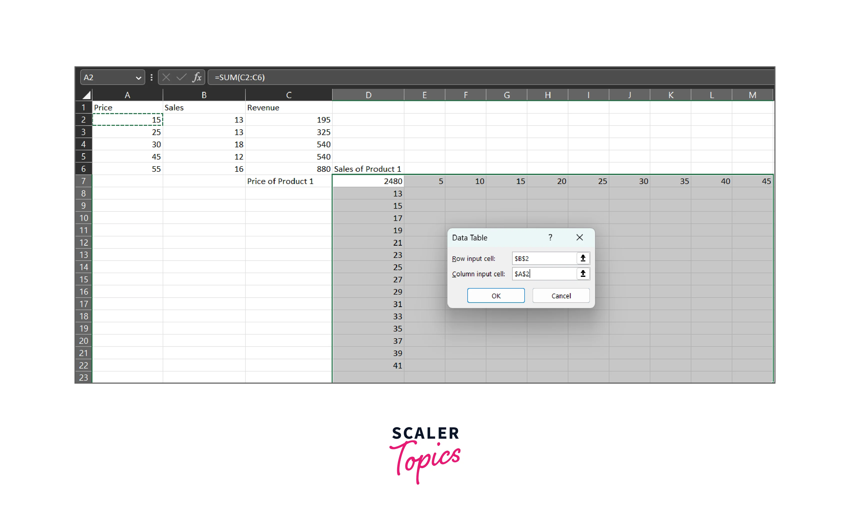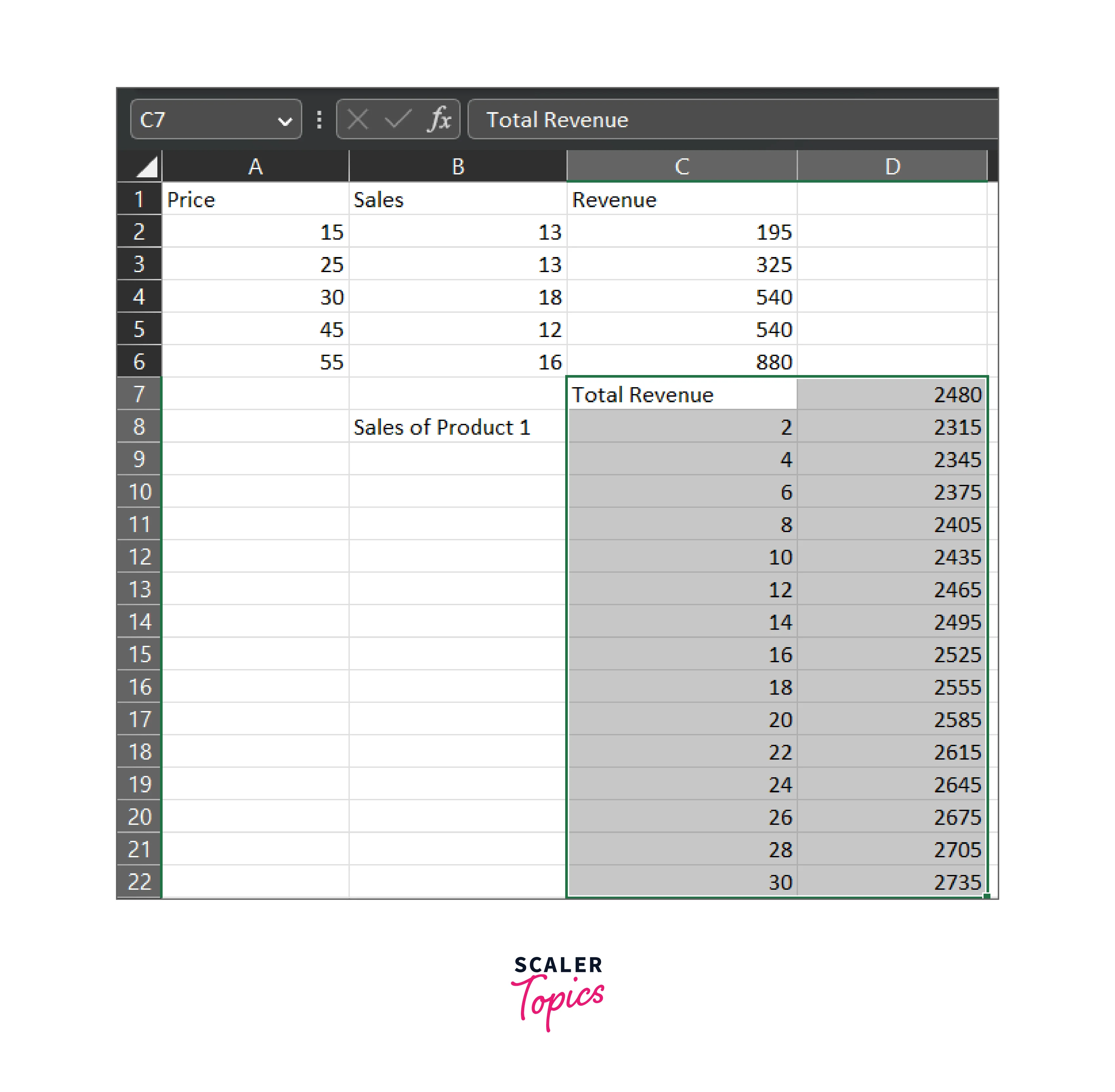 - In this example, we will use a simple spreadsheet that calculates the total revenue based on the price and the sales volume.