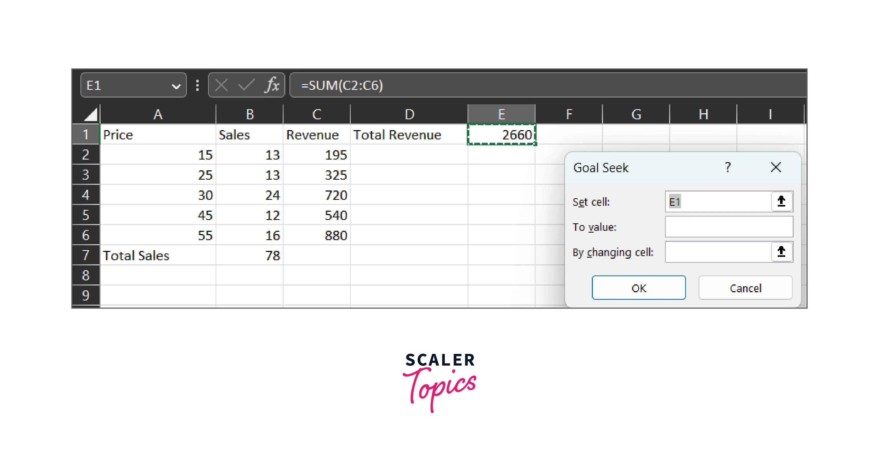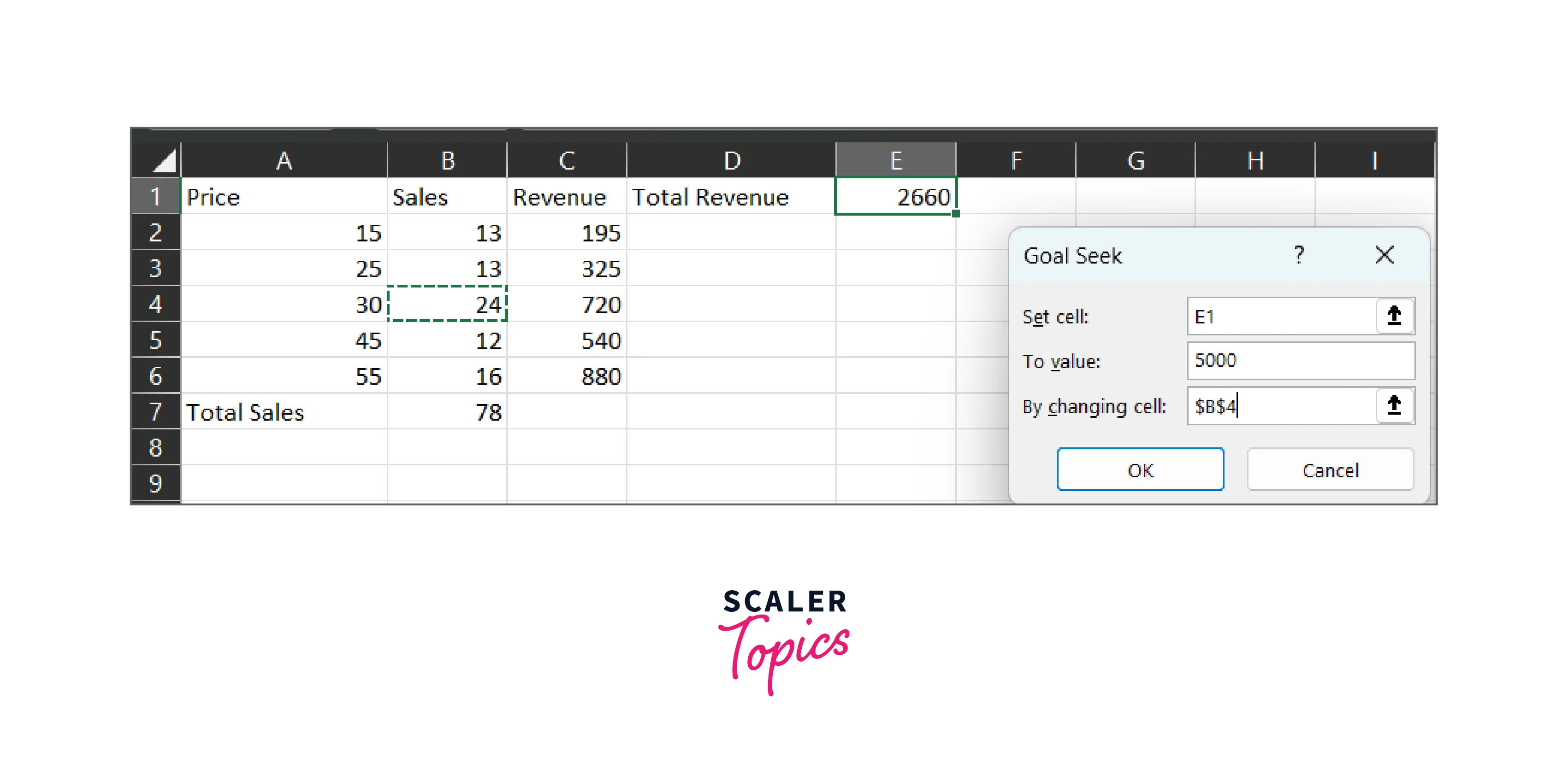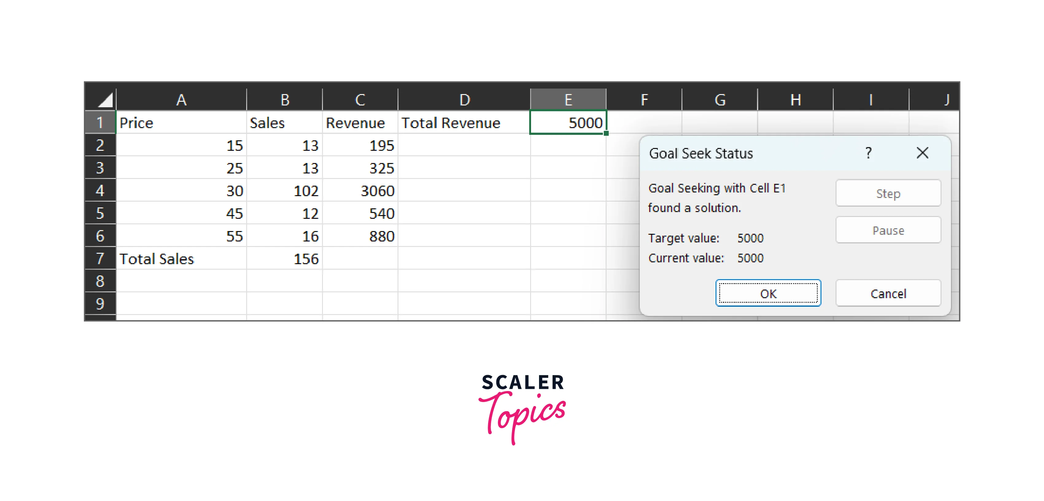 - The next step is to identify the target value. In this example, our target value is a total revenue of 5000.