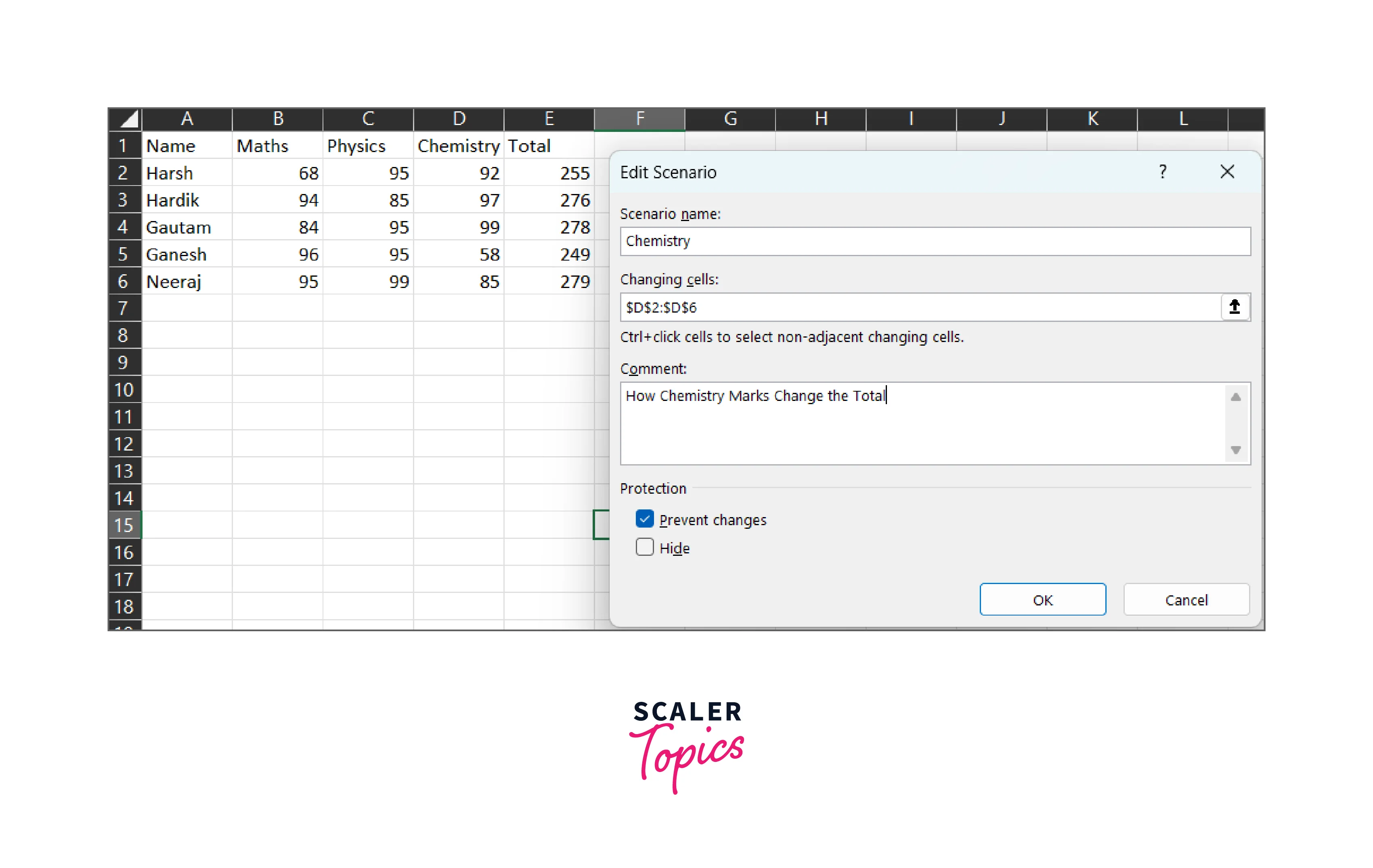 Enter a name for the scenario and select the cell(s) that contain the input values you want to change.