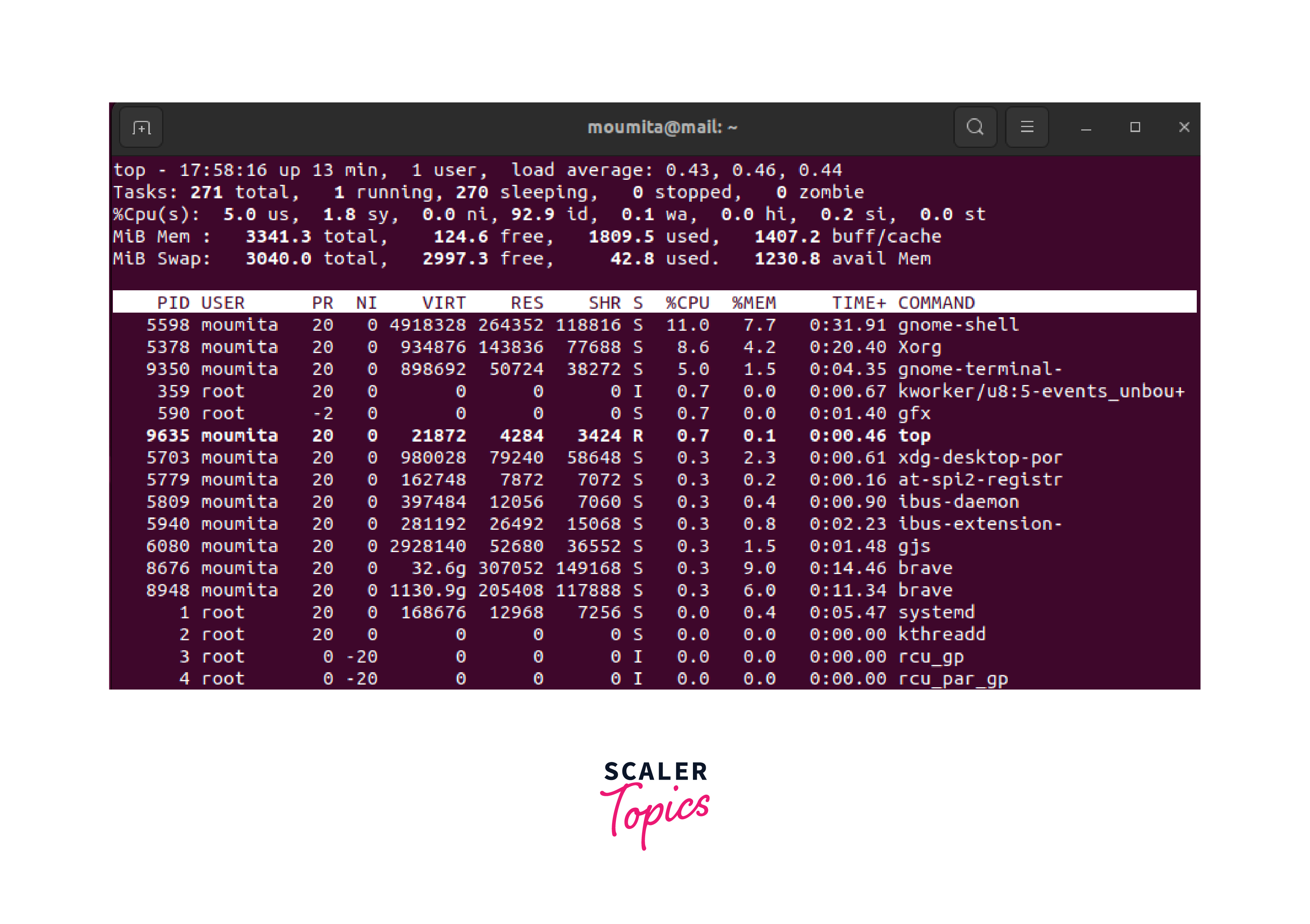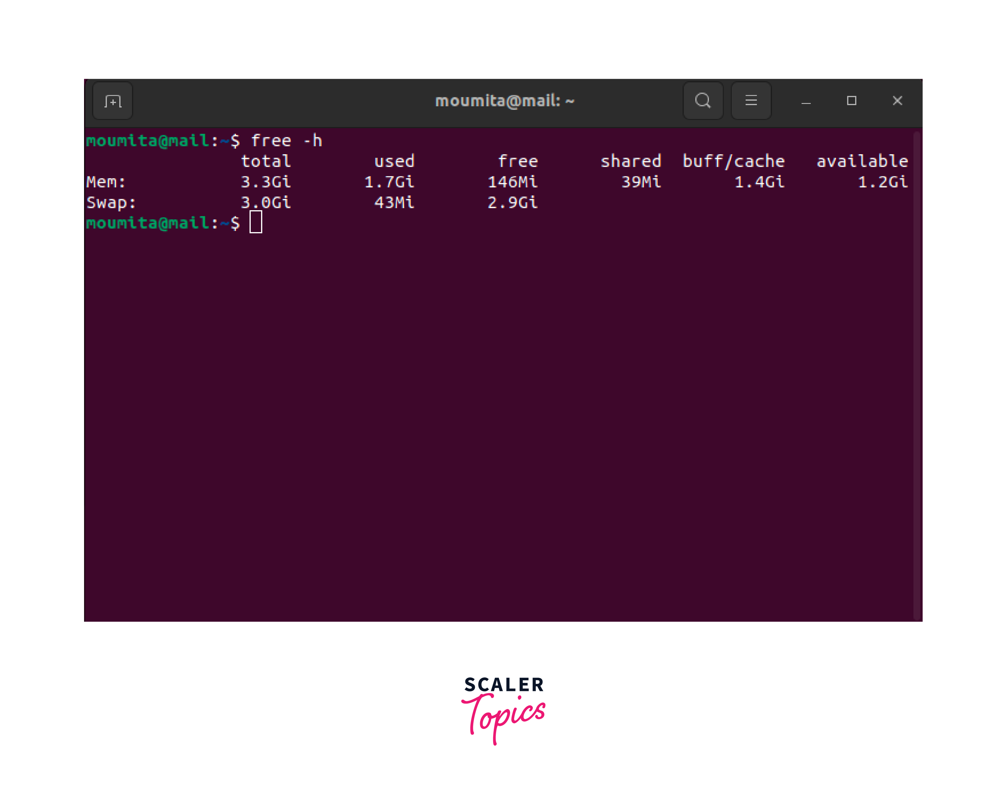 free: This command provides an overview of the system's memory, including both RAM and swap space usage.