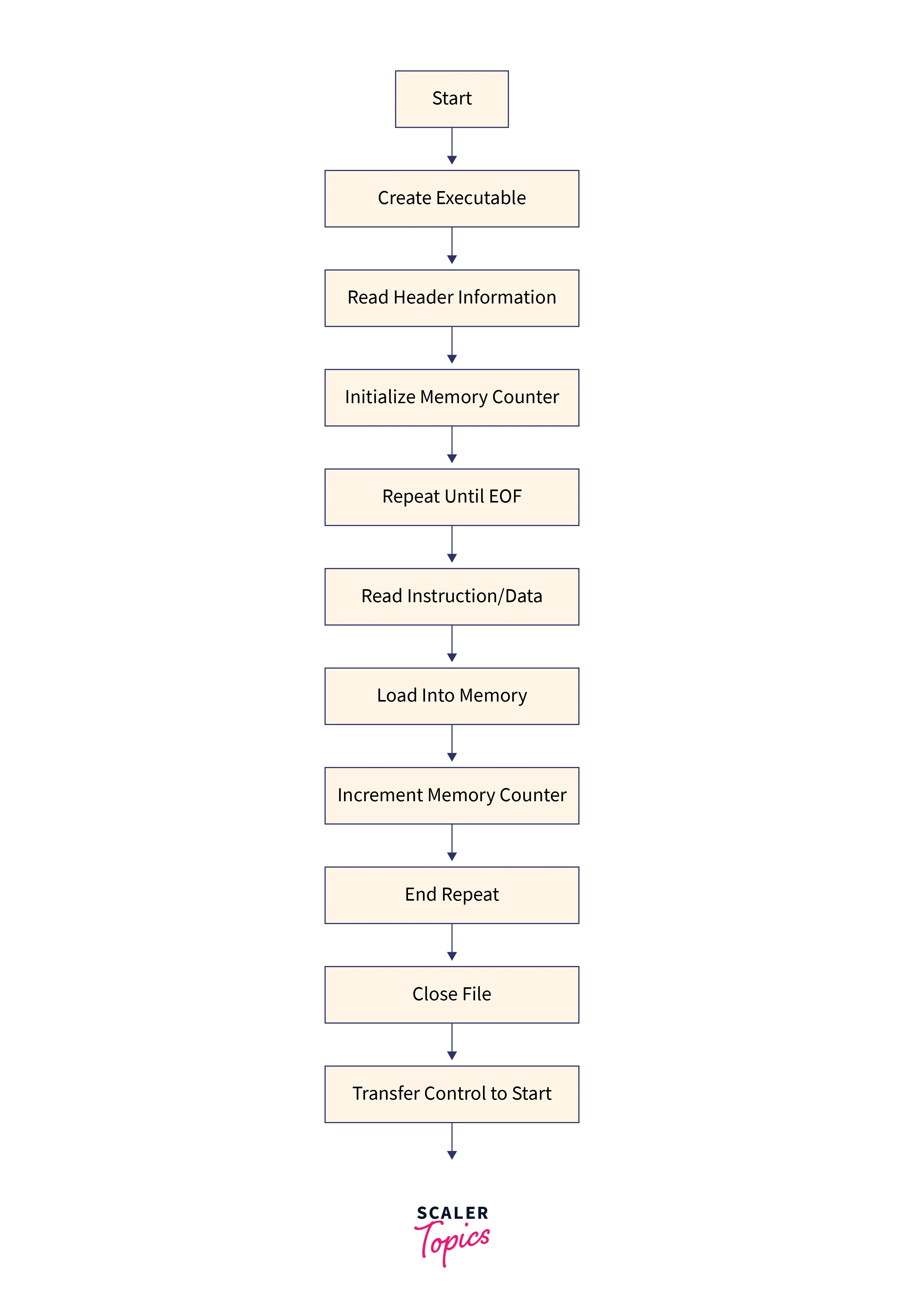 Now since we have learned the algorithm of absolute loader, let us summarize through a flowchart.